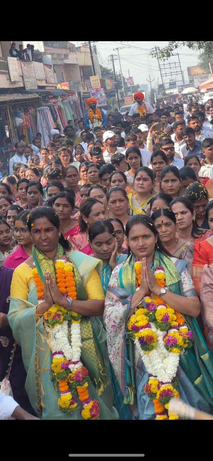 थेऊर गावातील मुख्य रस्त्यावर नागरिकांनी मोठ्या उत्साहात फुलांचा वर्षाव करत कोमलताई संदेश आव्हाळे व सुषमाताई मुरकुटे यांचे स्वागत केले. ढोल–ताशांच्या गजरात निघालेली ही भव्य मिरवणूक श्रीक्षेत्र थेऊर येथील श्री चिंतामणी मंदिरात पोहोचली. मंदिरात श्रींची विधीवत आरती करून सर्वांच्या वतीने आशीर्वाद घेण्यात आले.